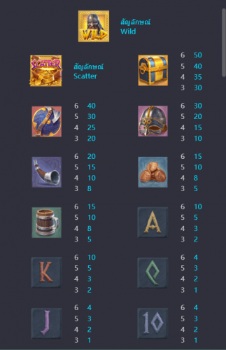 Q J และ 10 หากสะสมได้ 3, 4, 5, 6 อัน จะได้รับอัตราการจ่ายตามลำดับ 1, 2, 3, 4